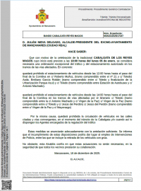 Ordenación excepcional del tráfico y del estacionamiento autorizado para el lunes 5 de enero de 2026.