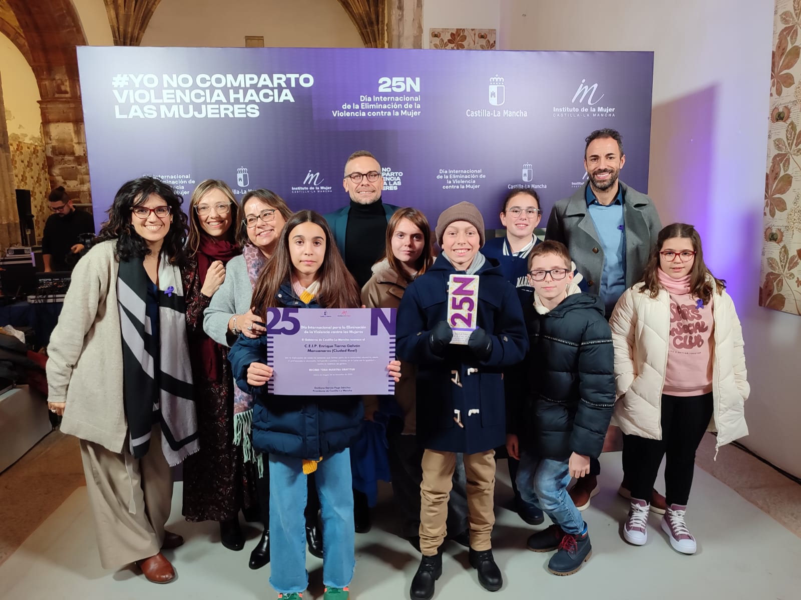 En un vídeo proyectado en el acto, el director del centro, Antonio Márquez, explicó la labor que se hace contra esta lacra. Después, junto al profesor Francisco Manuel Nieto y a una representación del alumnado, recogió esta distinción de manos del Gobierno regional en una gala en la que el colegio manzanareño estuvo acompañado por las concejalas de Educación, Paqui de la Cruz, y de Políticas de Igualdad, Laura Carrillo; así como por la delegada de la Consejería de Igualdad en la provincia de Ciudad Real, Manoli Nieto-Márquez.