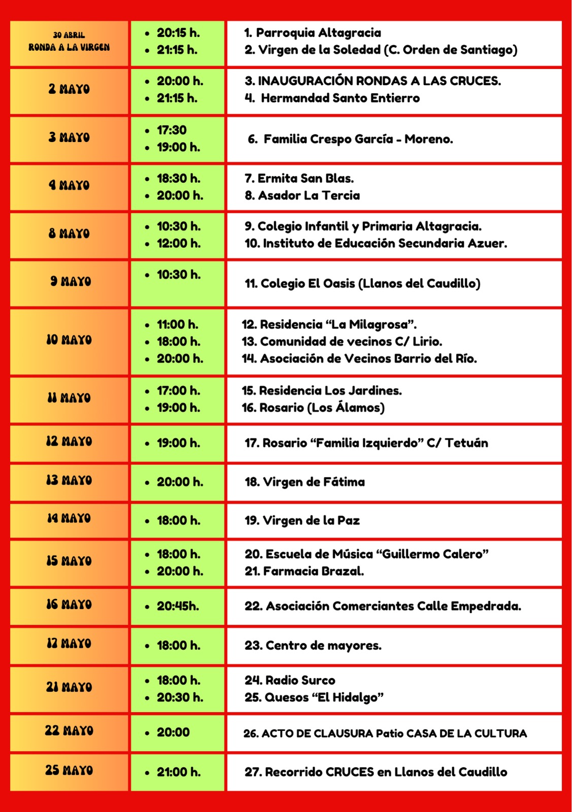 Cruces y rondas de mayo 2025