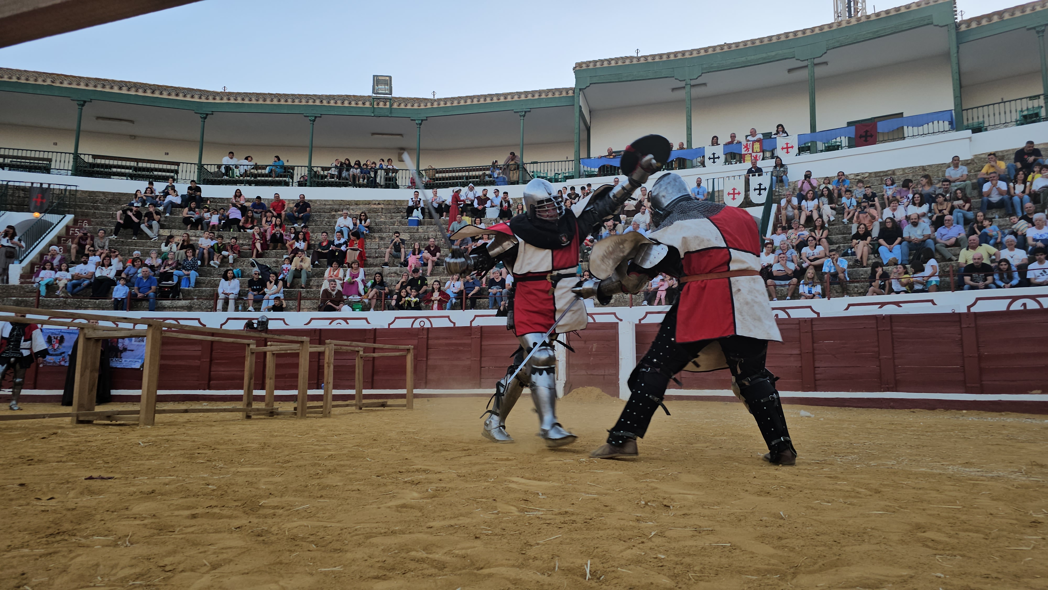 Custodes Arcus hizo una amena exhibición de tiro con arco atravesando hileras de globos con agua o pasando la flecha entre el fuego. Los numerosos Arqueros de Manzanares también demostraron su destreza y, tras juegos infantiles inspirados en el medievo, llegaron los impresionantes combates medievales a cargo del grupo ‘Bohurt La Mancha’, con luchas con espada y escudo o cuerpo a cuerpo, pertrechados de pesadas armaduras de acero sobre las que resonaban los fuertes espadazos.