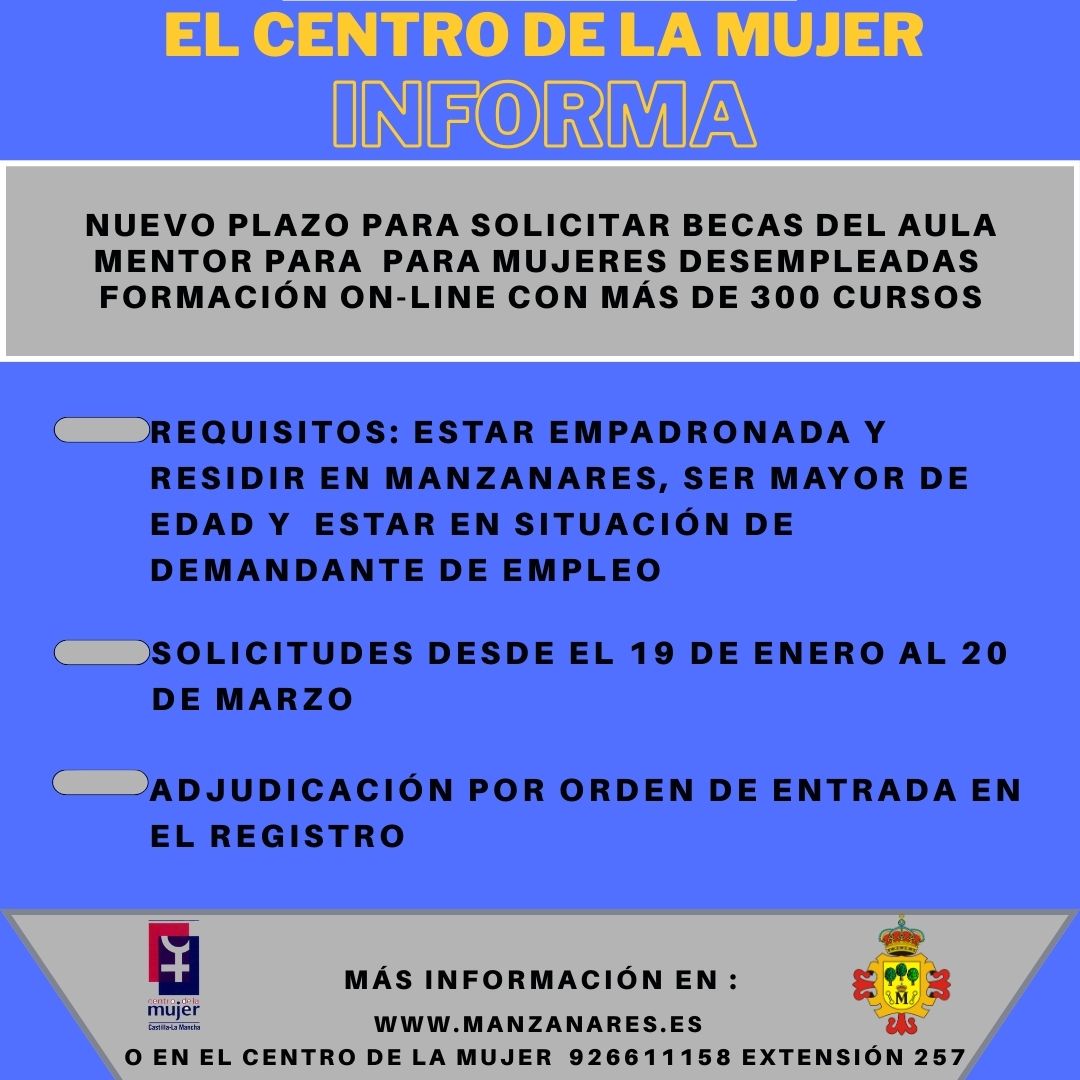 Las manzanareñas que deseen recibir puntualmente por correo electrónico información de las actividades que organiza el Centro de la Mujer de esta localidad, sean usuarias o no de este recurso, pueden proporcionar su dirección de e-mail contactando con este servicio municipal. Para ello pueden personarse en sus oficinas, en la Calle María Zambrano, junto al parque de las Cábilas; llamar por teléfono al 926 61 11 58, o remitir un correo a centromujer@manzanares.es(link sends e-mail)