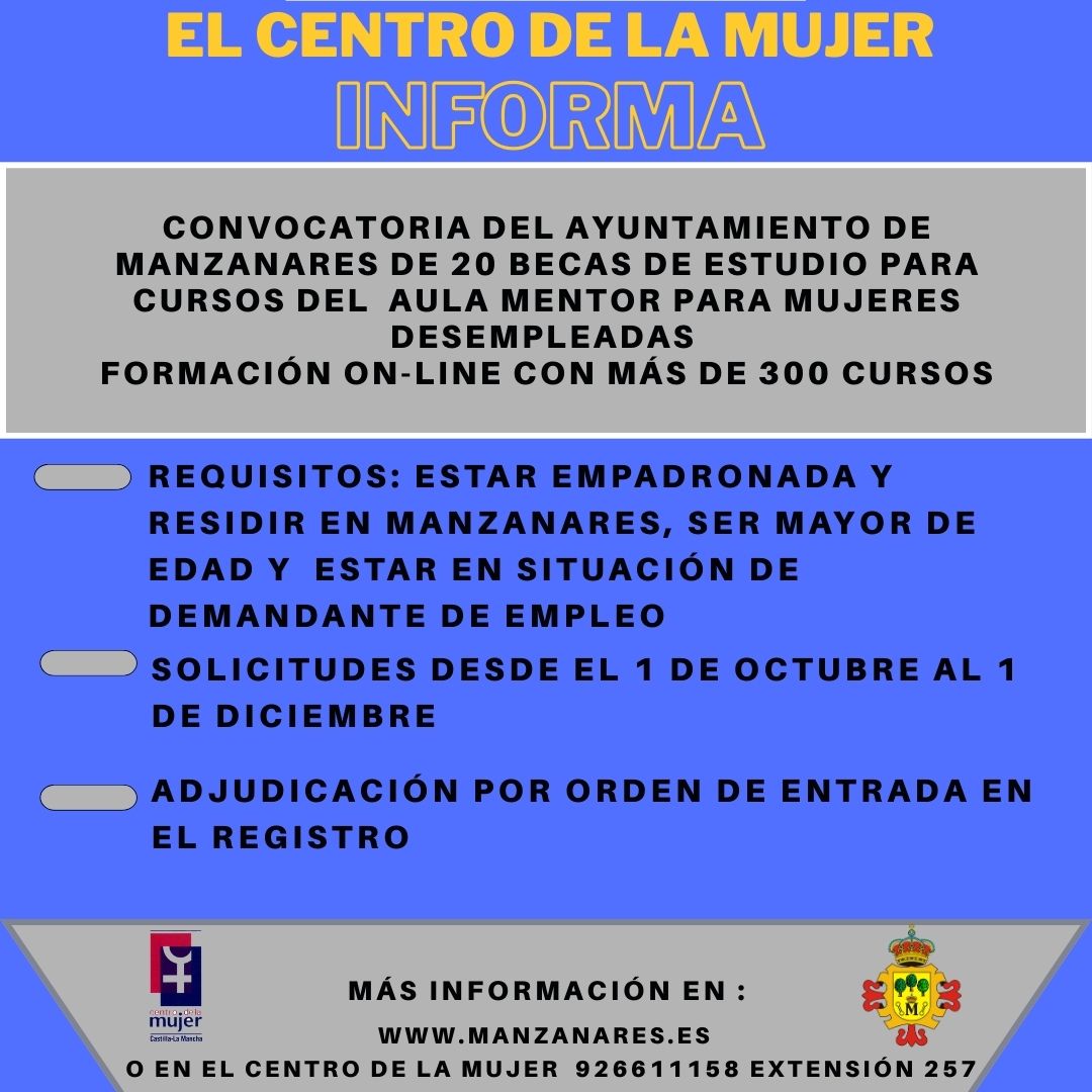 Las manzanareñas que deseen recibir puntualmente por correo electrónico información de las actividades que organiza el Centro de la Mujer de esta localidad, sean usuarias o no de este recurso, pueden proporcionar su dirección de e-mail contactando con este servicio municipal. Para ello pueden personarse en sus oficinas, en la Calle María Zambrano, junto al parque de las Cábilas; llamar por teléfono al 926 61 11 58, o remitir un correo a centromujer@manzanares.es(link sends e-mail)